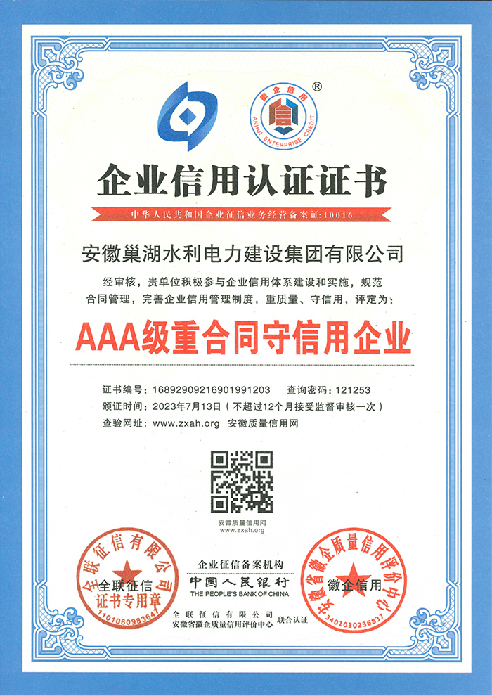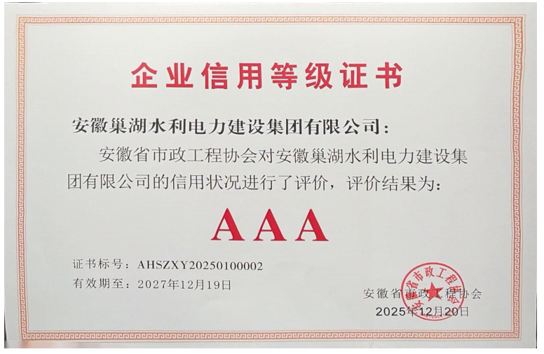 安徽省市政施工企業(yè)信用評價(jià)AAA企業(yè)