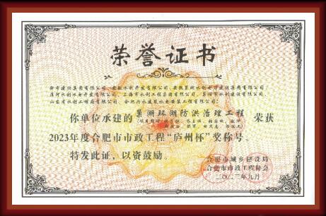 巢湖環湖防洪治理工程榮獲“廬州杯”獎稱號